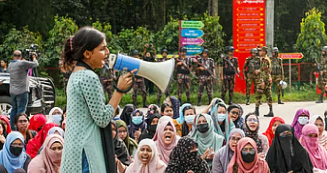 উপাচার্যের পদত্যাগ দাবিতে ছাত্রীদের বিক্ষোভ।